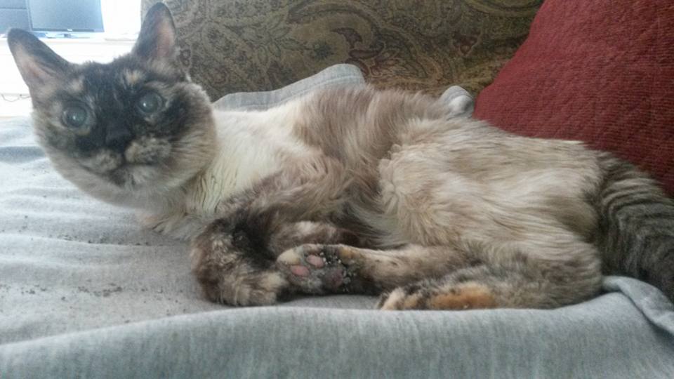 Prior to the start of visiting 19 year old Olivia I was told that I would be lucky if she did anything other than hiss, hide, and ignore me but ever since my first visit with her she has come out from behind the couch (her favorite sleeping spot) and greets me at the door or in the kitchen and it has been a rewarding experience each time!